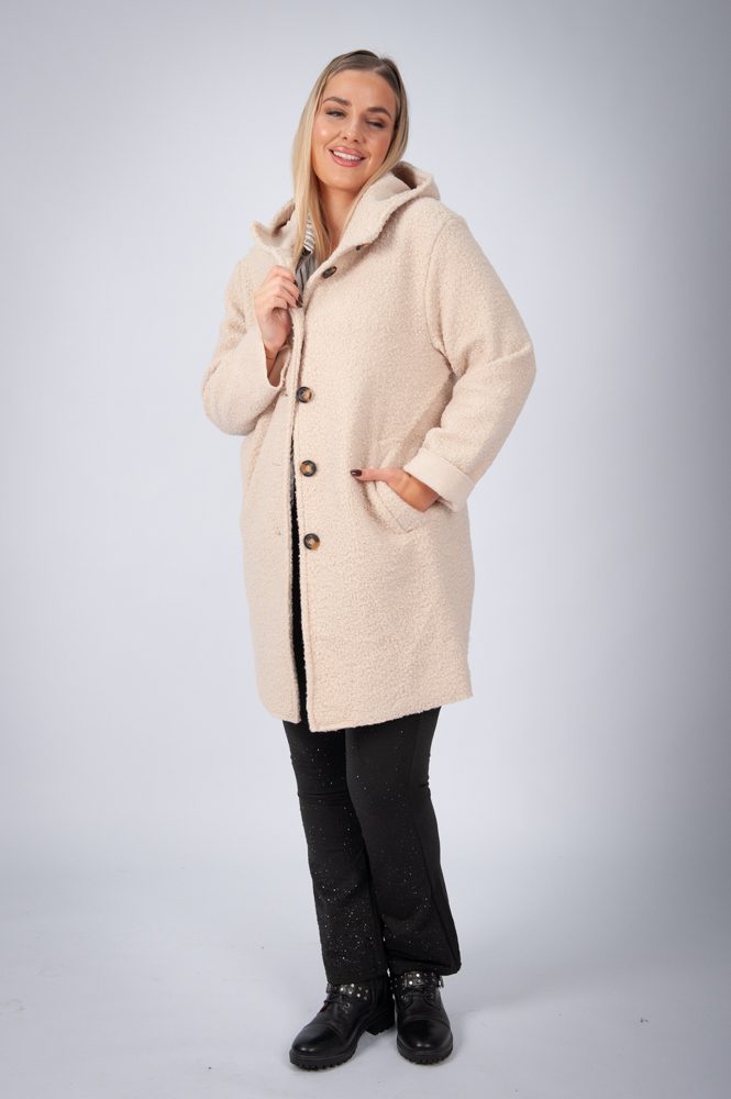 Πανωφόρι μπουκλέ, ελαφρύ και ζεστό ύφασμα, αφοδράριστο. Κλείνει με κουμπιά.