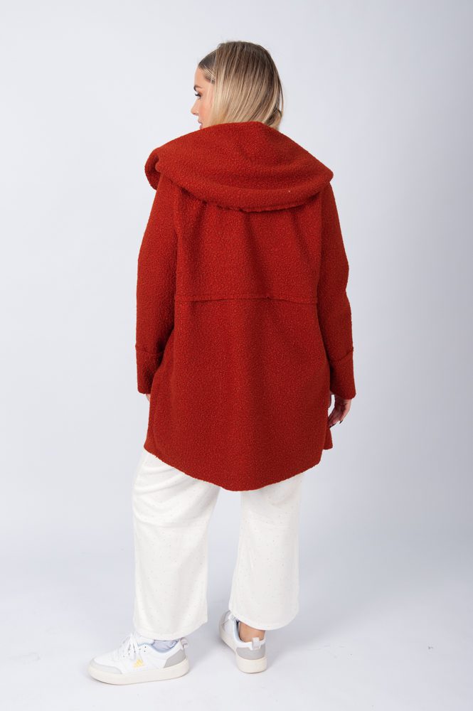 Πανωφόρι μπουκλέ, ελαφρύ και ζεστό ύφασμα, αφοδράριστο. Κλείνει με κουμπιά.