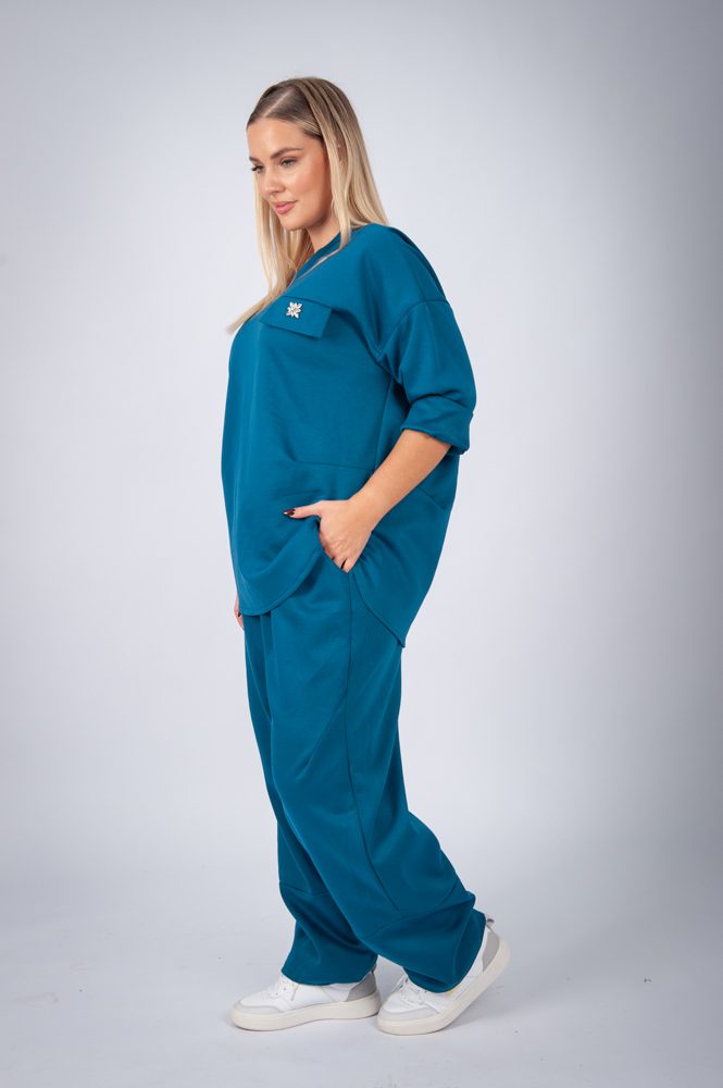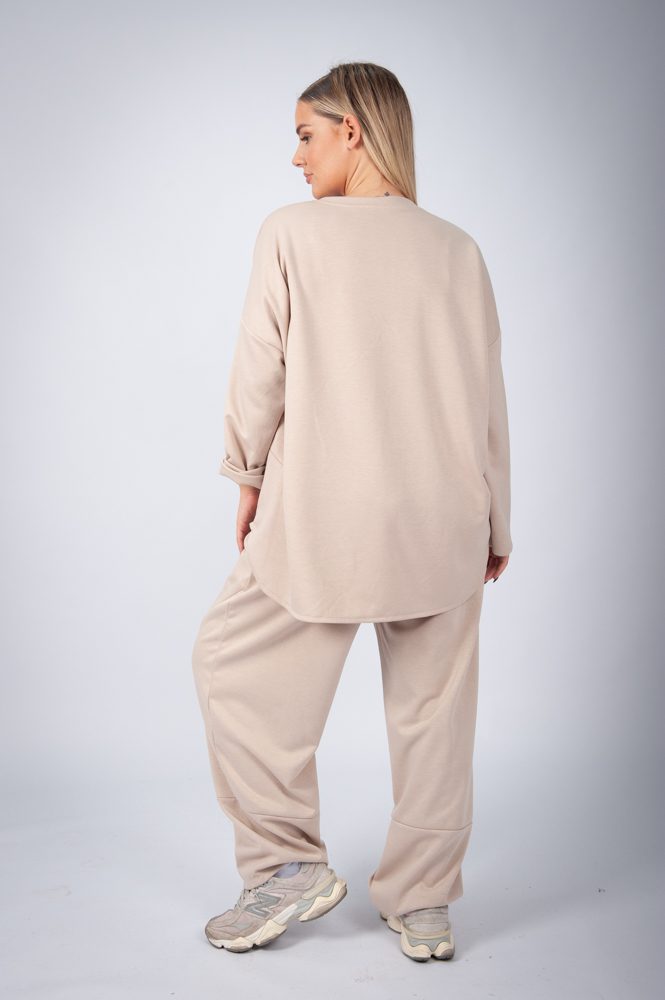 Ελαστικό plus size σετ: Μπλούζα και παντελόνι σε oversized, άνετη γραμμή. Τύπου λεπτό φούτερ, χωρίς χνούδι. Πολύ μαλακό και ελαστικό ύφασμα, δε διαφανίζει.