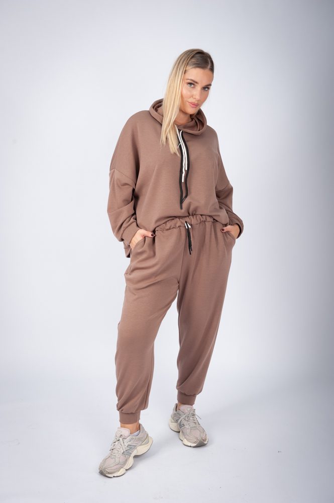 Ελαστικό σετ: Μπλούζα και παντελόνι σε oversized/ plus size γραμμή Στην μέση έχει λάστιχο και κορδόνι. Τύπου λεπτό φούτερ, χωρίς χνούδι. Πολύ μαλακό και ελαστικό ύφασμα, δε διαφανίζει.