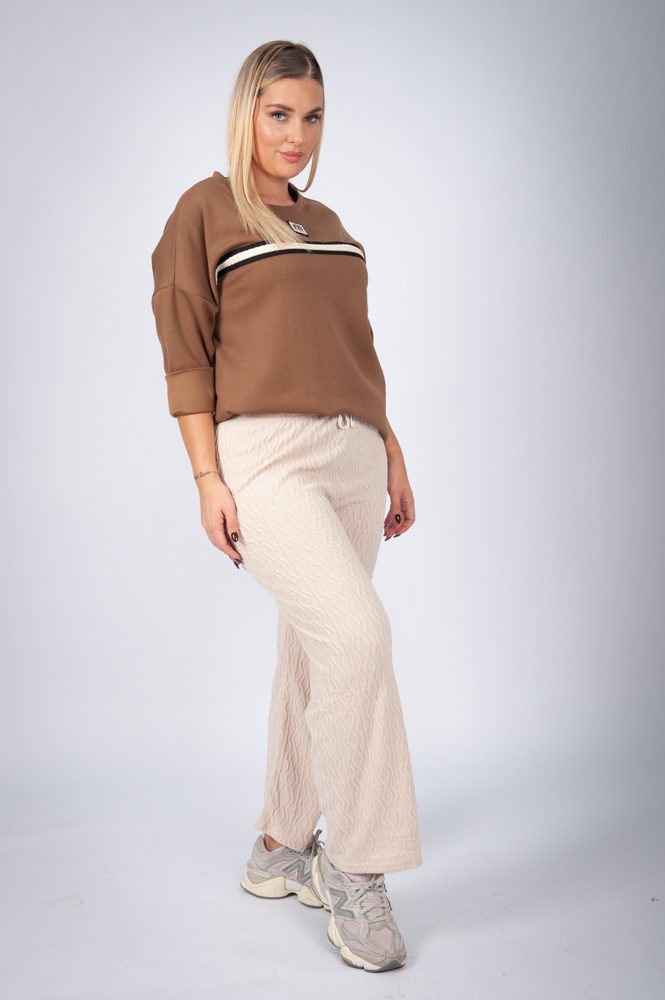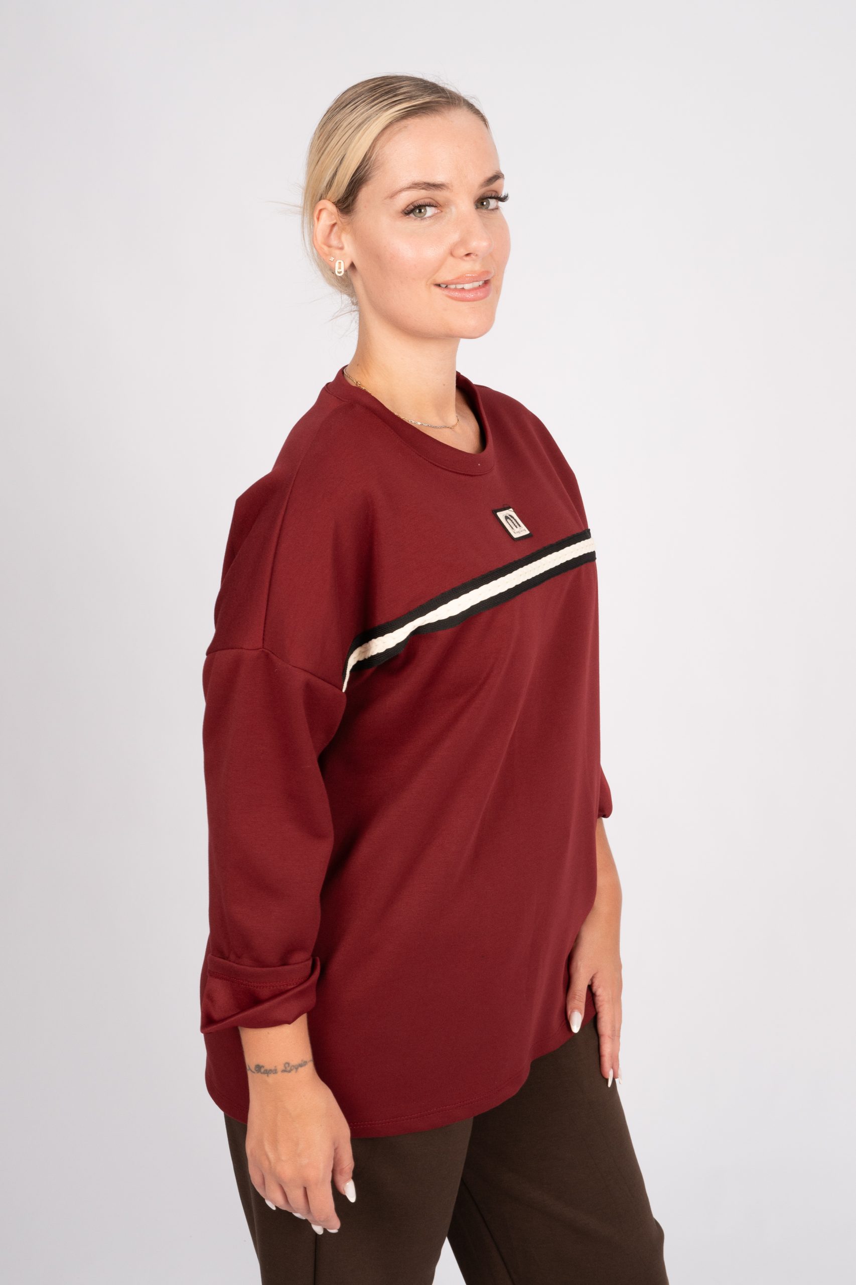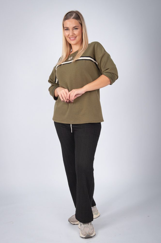 Μπλούζα oversized hoodie (τύπου λεπτό φούτερ, χωρίς χνούδι), πολύ μαλακό και ελαστικό ύφασμα. Λαιμόκοψη V. Διαθέτει ραμμένο κορδόνι-ρίγα ανάγλυφη.